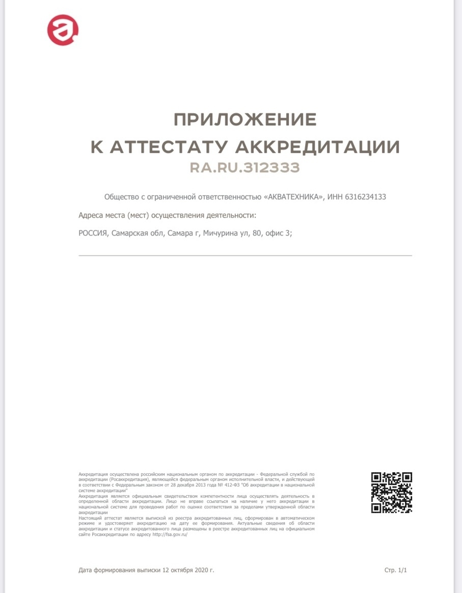 - Аттестат Аккредитации RA.RU 312333